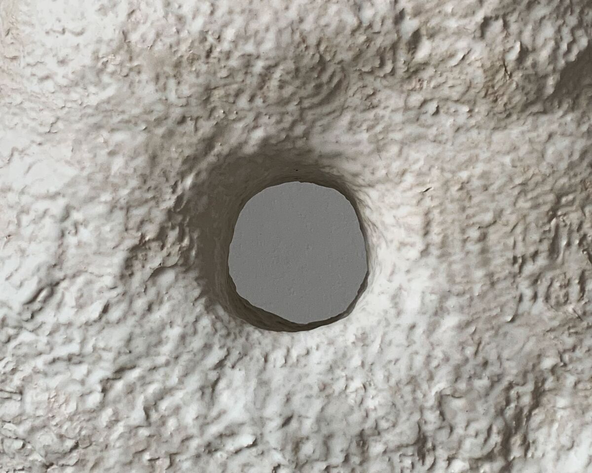 This work is part of a series of large sculptures that give space to the ideas of function, ritual, and geological processes that occur over time.