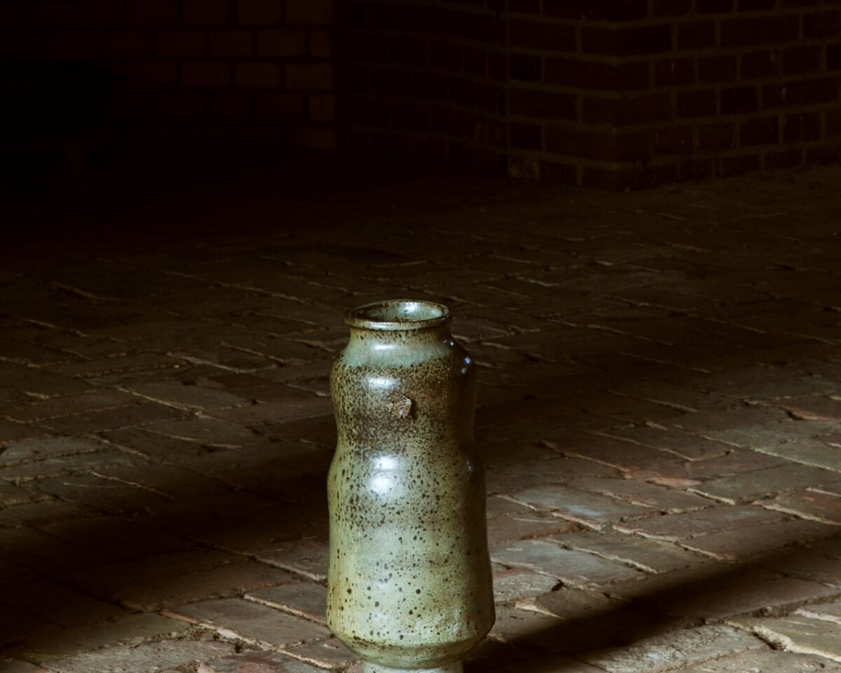 Wood fired in a bourry box wood kiln over a period of 24 hours at the Guldagergaard International Ceramics Research Center. The memory of the wood kiln is made especially present by a small piece of ash visibly fused to the surface of the vase.
